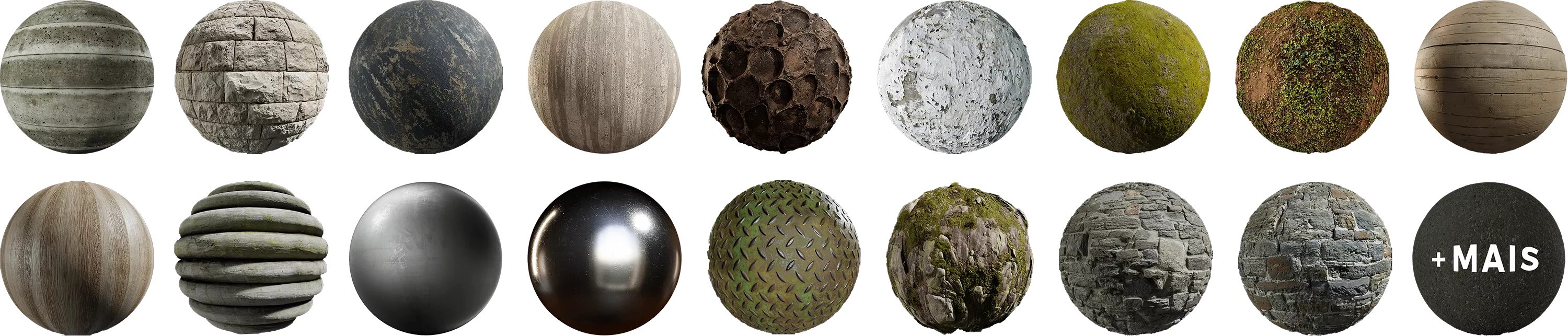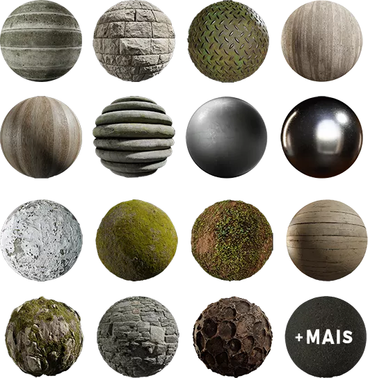 Texturas PBR (Physically Based Rendering) são criadas para simular o comportamento realista da luz e dos materiais. Elas oferecem um nível de realismo que texturas comuns não conseguem alcançar, tornando seus projetos mais profissionais e impactantes.